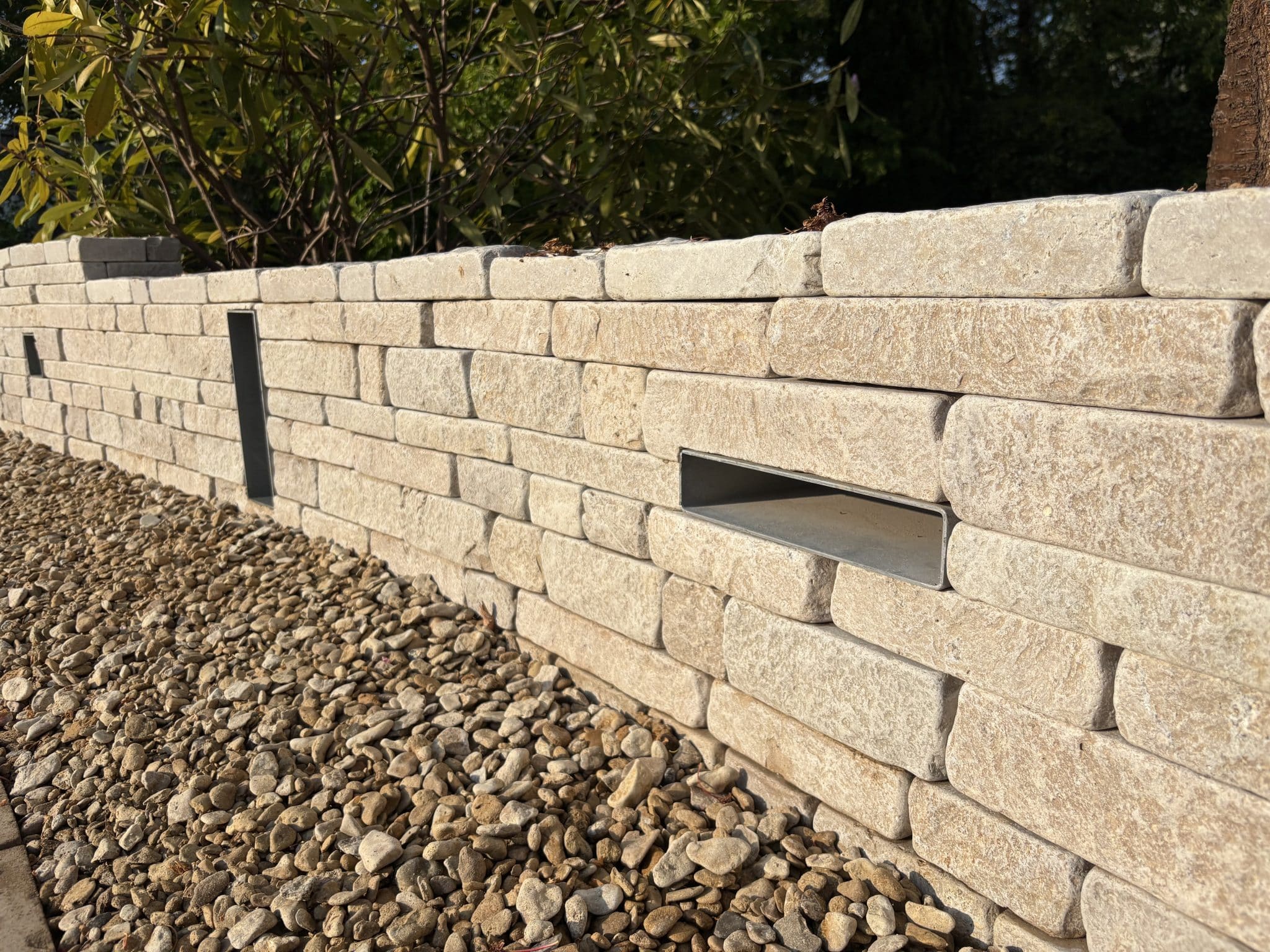 Rustic limestone wall delivers a unique, open boundary that neighbours don’t have